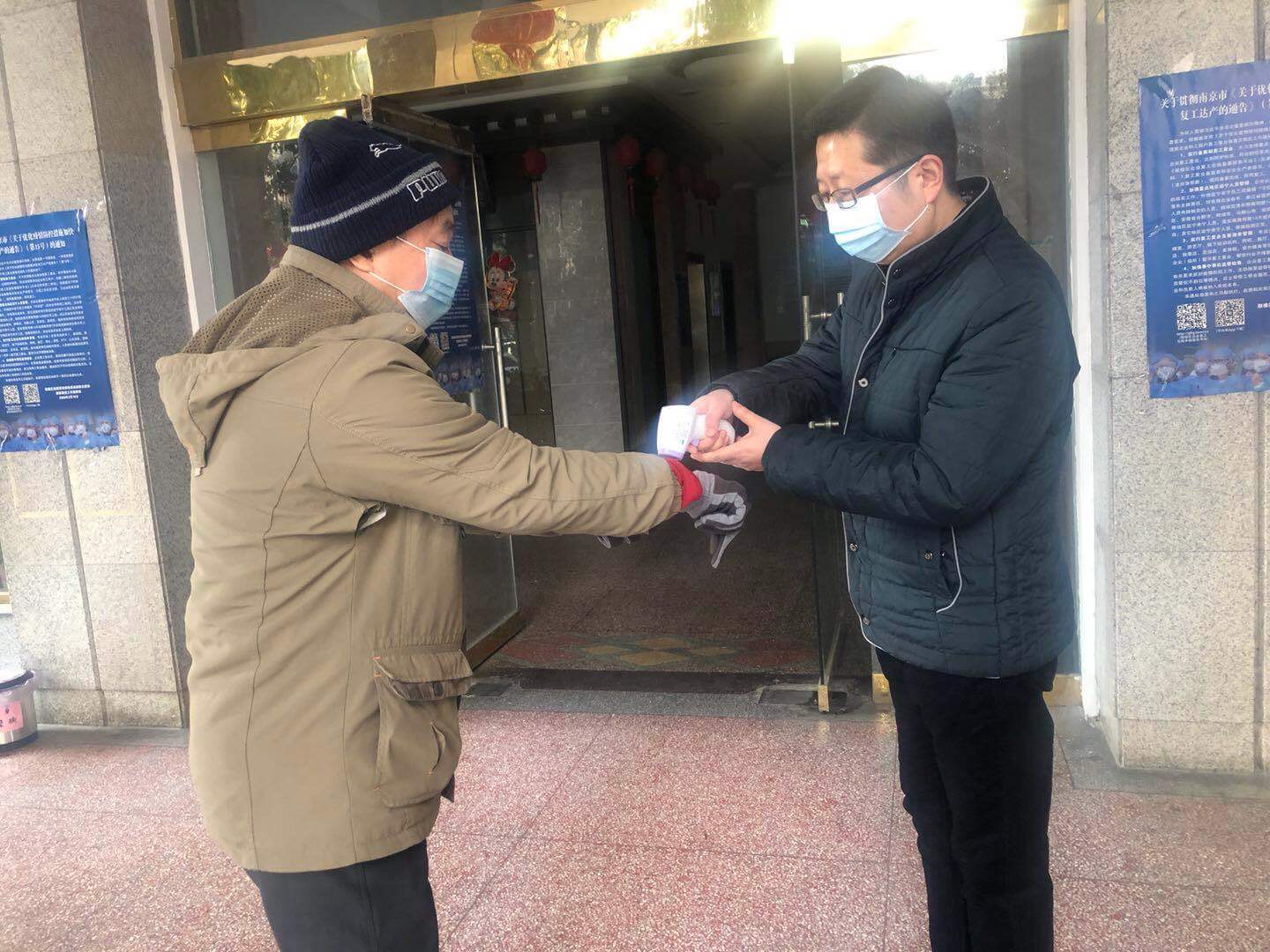 疫情期間黨員同志協(xié)助大樓物業(yè)為員工測溫