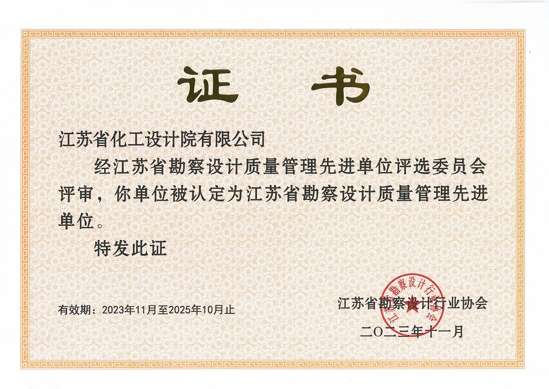 經(jīng)江蘇省勘察設計質(zhì)量管理先進單位評選委員會評審,我院被認定為江蘇省勘察設計質(zhì)量管理先進單位!